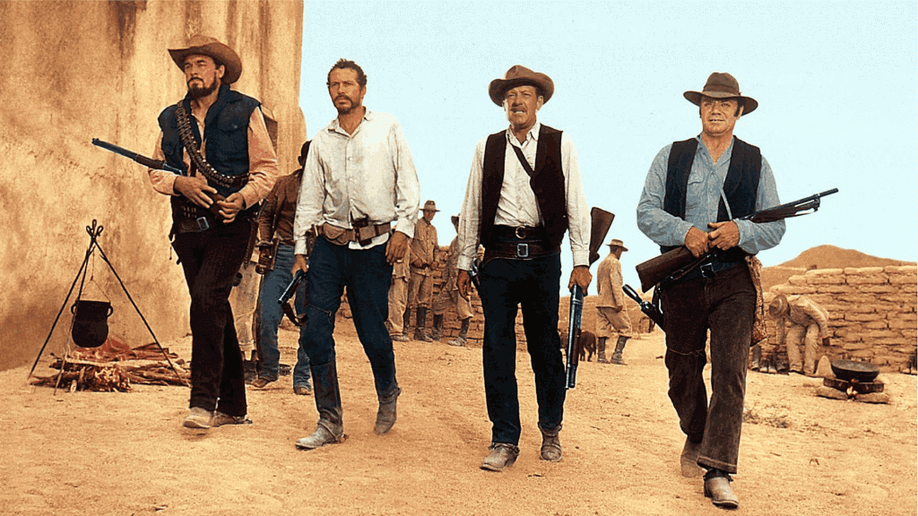 As I mentioned before, what is so revolutionary about this movie is the use of epic violence: corpses riddled by bullets, a machine gun that rips bodies apart and grenades that destroy entire buildings. The final shootout is an example of a virtuoso working against a whole world of viewers by challenging the way they’d watch Westerns. This is a war movie. The remaining five bandits face a squadron of angry Mexican soldiers. It’s the scorpion being eaten by the never ending masses of ants. It’s five men against the inevitable passing of time. It’s the Wild West against the approaching twentieth century. It’s the beloved traditions against the modern age. The bullet-spraying machine gun, in this case, is seen as the last door to knock at. Each one of the wild bunch tries to hold the weapon for as long as he can, but in the end, they all let go, crippled by the enemy fire. Crippled by their dark past. Their mistakes. Time sinks its teeth into their lives, ending them once and for all. It’s never been about gold, silver or any of that. It was about living the fearless life no one would get to live anymore after that.