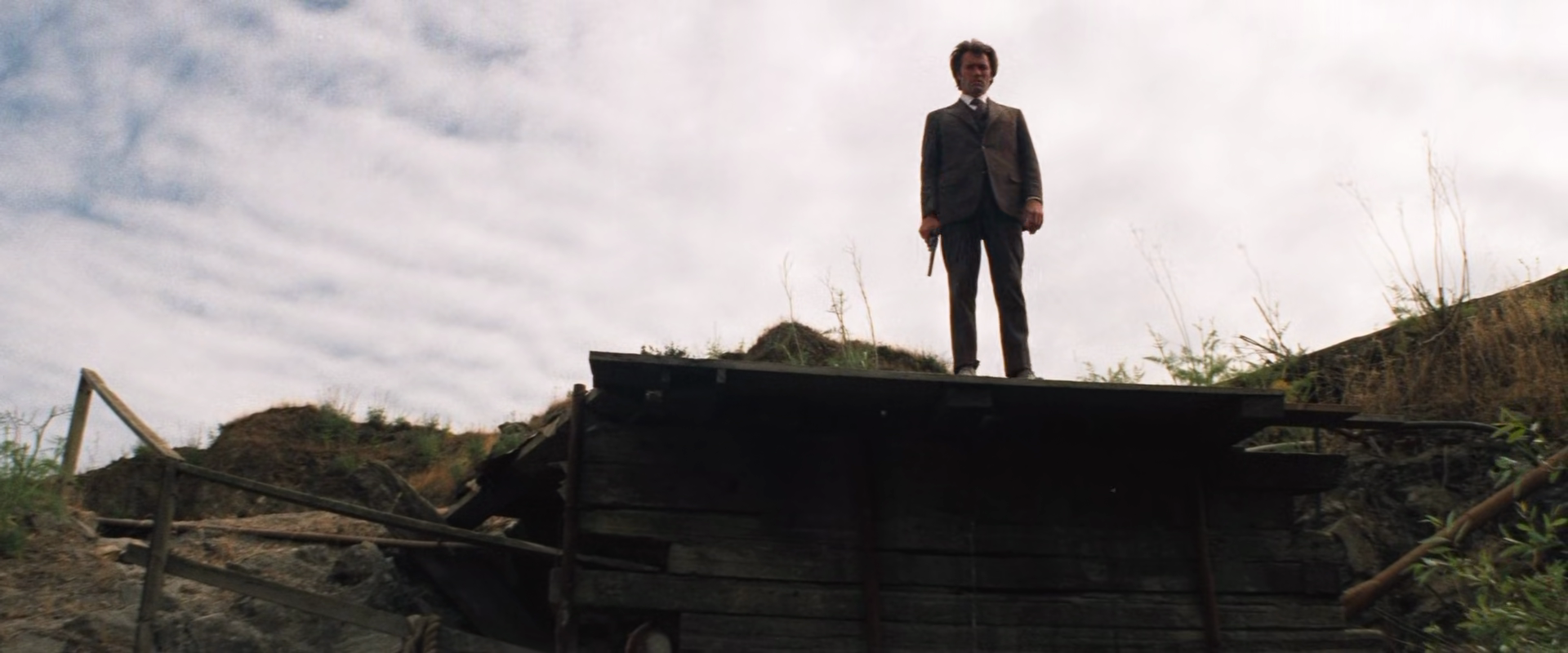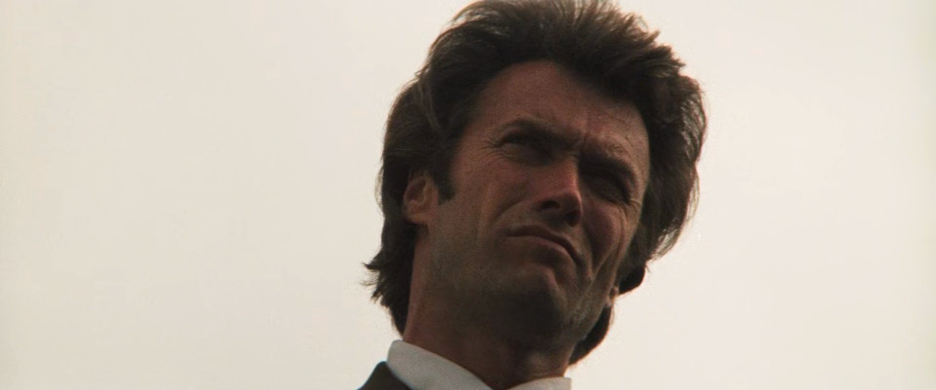 What stands out about this seemingly run-off-mill cop thriller is in fact how straightforward and predictable it may seem at first glance. Like a lot of noir films from the 40s and 50s, we watch a handsome vigilante do anything he can in order to stop the evil that is threatening innocent by-standers. Hell, one of the first scenes involves Harry taking matters into his own hands as a robbery is underway across the street from his favorite burger joint. He lazily picks up his Magnum .44 and walks out to meet the gun-toting robbers. He shoots the driver and the guy in the passenger seat. He then proceeds to blow the arm off the man wielding a shotgun. So far, so good. But once he approaches the wounded criminal who is visibly trying to reach for his gun, Harry engages in the by-now famous monologue about the power of his Magnum .44 (”the most powerful handgun in the world”) and the consequences of a close-distance shot in the face. He concludes his monologue by looking straight into the camera and saying, ”You’ve gotta ask yourself a question. Do I feel lucky? Well, do ya… punk?”
