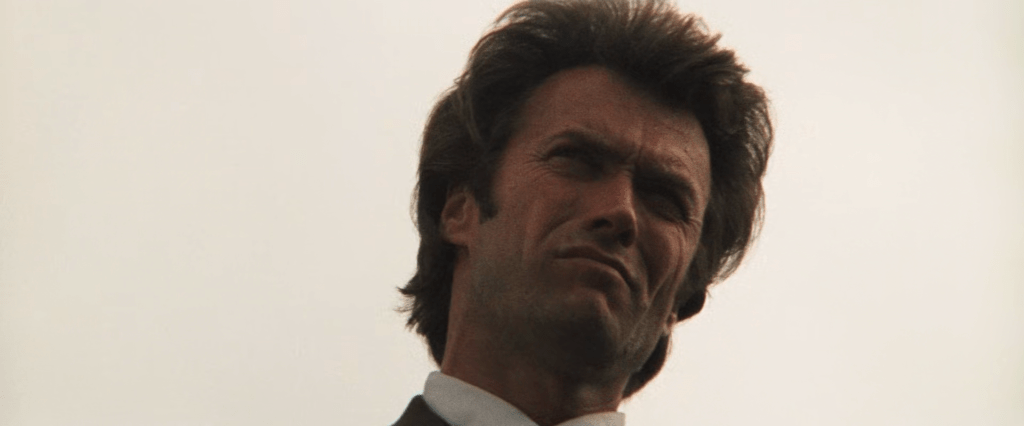 Siegel stages this confrontation without pulling any punches: one camera focuses on the robber’s arm, slowly reaching for his weapon, and another camera is set on Eastwood’s face as he looks directly at us. Simple, but effective. This initial stand-off acts as a checkpoint for whatever is to come in the movie’s remaining runtime. As an audience, we must nod our heads and admit that this is indeed the kind of movie we signed up for. This new Hollywood violence can be the stuff of nightmares. To make the point even clearer, the initial draft of the movie had the scene end with Harry placing his gun to his own temple and laughing at the perp. Talk about making a statement.