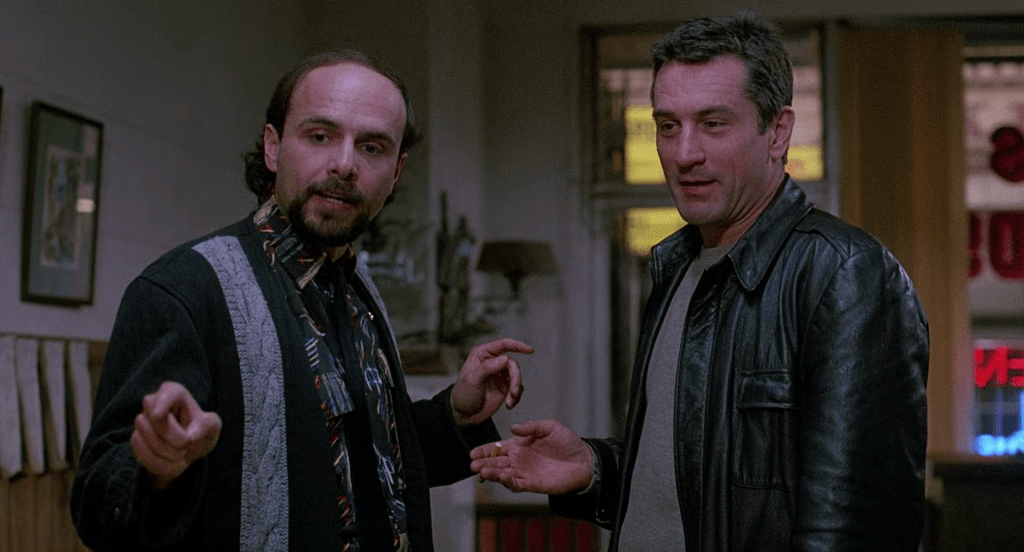 You have a pre-Sopranos Joe Pantoliano who plays the double-crossing bail bondsman trying to screw De Niro out of a well-earned pay-day. You have Dennis Farina playing the explosive mafia boss with the ever-stoic veteran actor Philip Baker Hall as his loyal consigliere. Add to that list the late Yaphet Kotto as the ominous yet always-too-late-on-the-scene FBI agent Alonzo Mosley, and John Ashton as De Niro’s hilarious bounty-hunting rival and you got yourself a cast of perfectly lived-in characters that, when called upon, offer their very best.