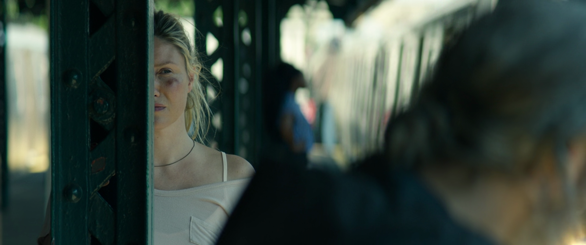 In You Were Never Really Here, details provide depth to Joe’s traumatizing past without every confronting it head-on. Ramsay uses the camera to pick upon Joe’s inner outbursts of violence by focusing on a candy he slowly squashes with his fingers or the scars covering his body hinting at physical suffering from the past or blood smears on a tissue which he used to clean the hammer he used to fracture someone’s skull. These details are then expanded within Ramsay’s world. For example, as Joe waits for the subway train to arrive, the camera captures a woman standing next to him, her cheek visibly bruised beneath her left eye. It is a moment that is there only to hint at something crucial to the story, without directly addressing it. Joe doesn’t walk up to her, asking if she’s alright. There is no need for us to explore that woman’s story. Ramsay simply encourages us to consider Joe’s surroundings and enrich our viewing experience.
