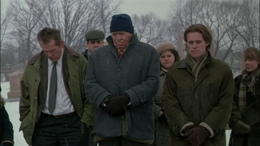 And although Paul Schrader as a director has never been known for his eye for detail, Affliction is a film that feels lived-in. It feels like it was forged and chiseled in the snowbanks and pine barrens of New Hampshire. Even a secondary character like Margie Frogg (played by Sissy Spacek), Wade’s love interest and the only person whom he is not afraid of letting into his life, exists on her own, rather than serving the sole purpose of comforting Wade when he needs a good word or two. Her reality is separated from Wade’s, as the film follows everything through Wade’s hazy point of view merging past memories with present events, seeing things that might as well not be there for anybody else to see besides Wade.