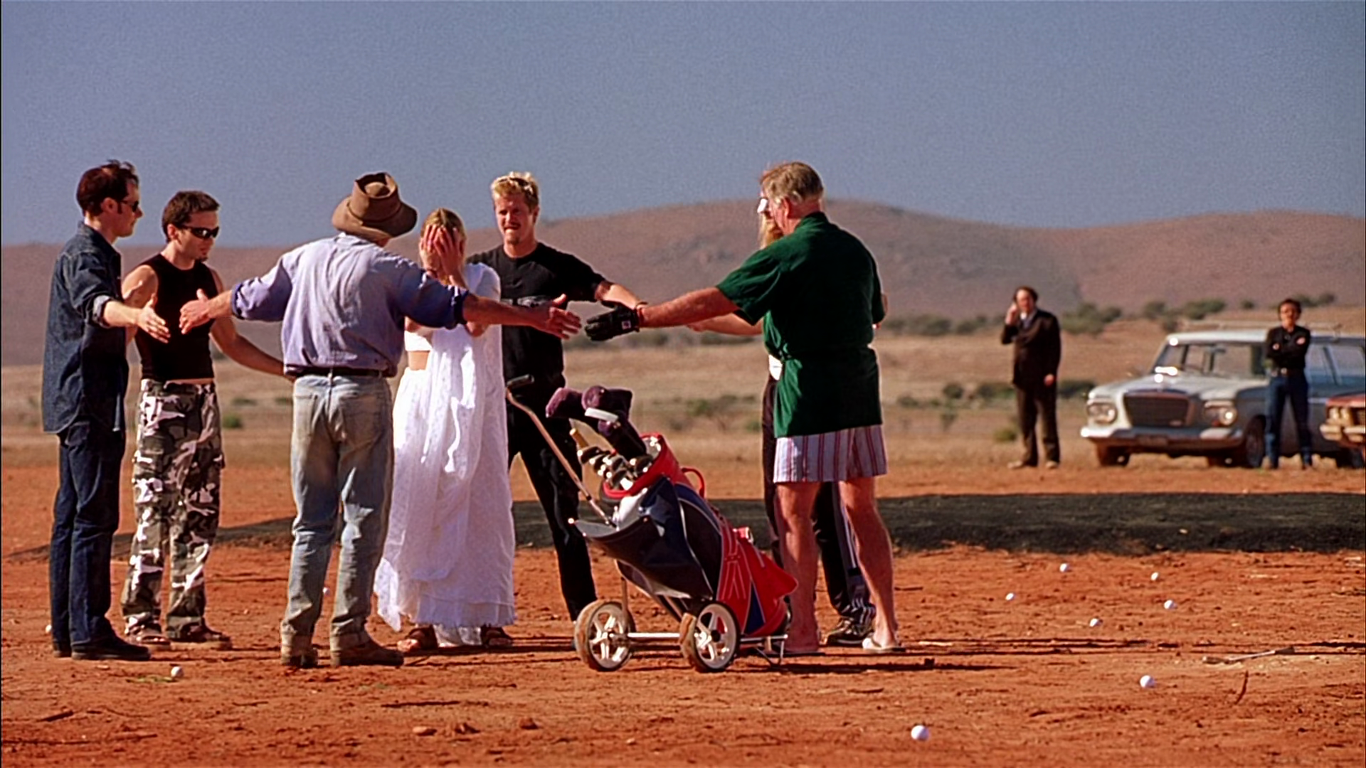 Campion begins Holy Smoke with a rather obvious and quite aggressive critique of modern family structures. Ruth’s family, for one, is a combination of low IQ, testosterone, bodily fluids and just plain ignorance. Once they hear of Ruth falling under the spell of a guru in a far-away country, their first instinct is to bring her home and force her back into the ‘family cage.’ Their world-view is limited to an evening spent lounging on the sofa in front of the TV with a can of beer and some Cheetos (Campion even goes as far as inserting a sheep as a house pet!).