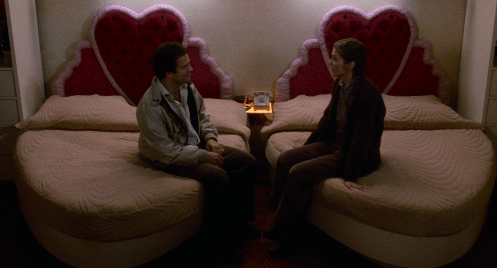 Yet, despite feeling in tune with Dennis Hopper and Peter Fonda’s hippies from Easy Rider, David and Linda keep putting off their big spiritual adventure in favor of comfort. First they decide to hold off their planned ceremony of matrimony in a Las Vegas chapel. Then, they make up their mind and splurge a lot of money on a bridal suite at the Desert Inn. What they get in return is a Junior bridal suite with two separate heart-shaped beds. Their initial plan of escape and freedom is surprisingly moving very slow. Will they ever get there?