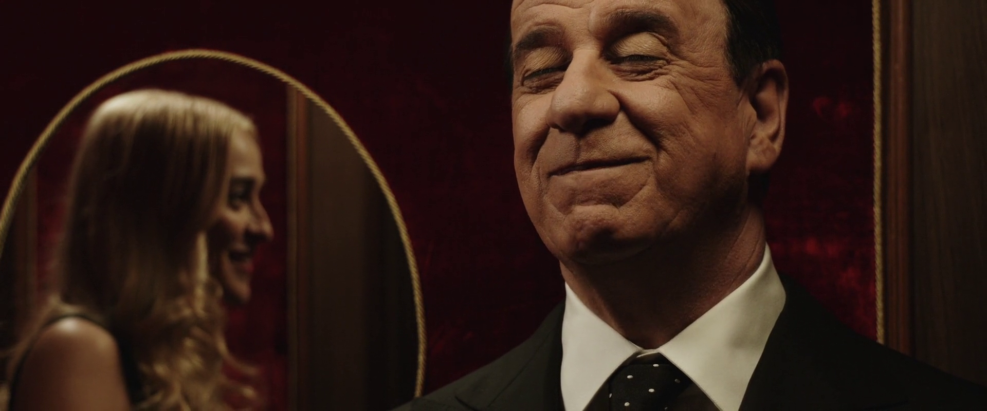 It’s difficult to imagine this movie working as well as it does in anybody else’s hands. Sorrentino is not interested in Berlusconi’s life. He’s not interested in who he was as a person or politician or business tycoon. What draws Sorrentino to Loro is the implication of a nation that stood watching in awe and stupor as greed, corruption and lies permeated the sociopolitical landscape. For Sorrentino, Italy is a country of spectators and everything that happens, just like in The Great Beauty, is seen as a spectacle to be marveled at. But, unlike the majestic splendor of Rome in The Great Beauty, the world of Loro is hollow and dark. It is made of empty rooms and interior swimming pools, vast golf fields and meaningless garden decorations. It is a world in decay and the public doesn’t know it yet. No. The public is still drooling at the thought of a night spent with Silvio.
