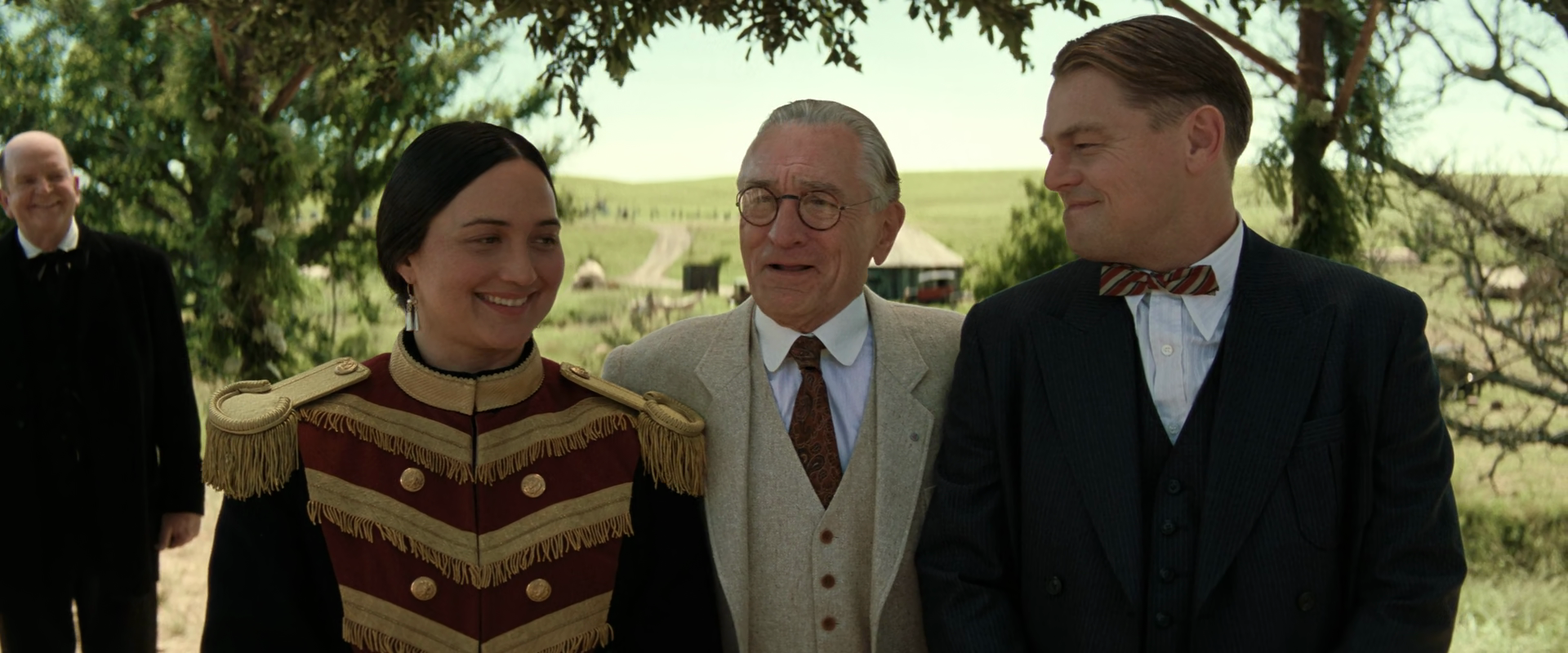 In Killers, everything begins and ends in rituals. For the Osage, rituals were what kept them in touch with their ancestors and higher powers watching over them in times of suffering and turmoil. For the white folk, rituals became an excuse for entertainment and scheming. As the movie progresses, Scorsese makes it evidently clear that the Osage’s ritual practices are steadily being replaced by the white man’s own customs and attire. Funerals are increasingly less about commemorating a loved one and welcoming them into a new life, and more about dressing in black and trying to hide past sins. The shaman is eventually replaced by a priest, the power of organized religion suffocating the last bit of Osage tradition.