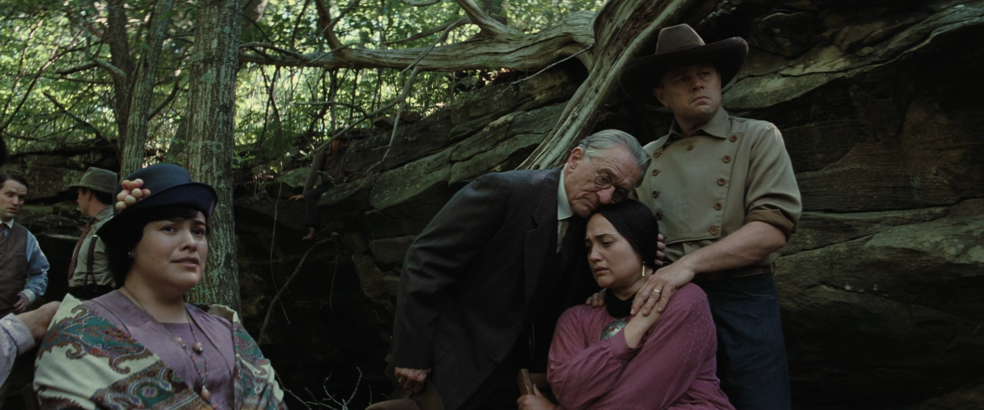The film, like Hale, doesn’t make a mystery of its intentions. Scorsese presents the murders in a pure, matter of fact basis. The killers are shown in plain sight. Gone is the mystery narrative of the book which the film was based on. Gone is the heroic framing of the FBI in the resulting investigations. Gone is the ambiguity to Burkhart and Hale’s culpability. Scorsese strips the film of any sense of morality or aesthetics, admitting to his own fault of presenting the story of Native Americans from a white man’s perspective and what in the end will be viewed as, inevitably, entertainment.