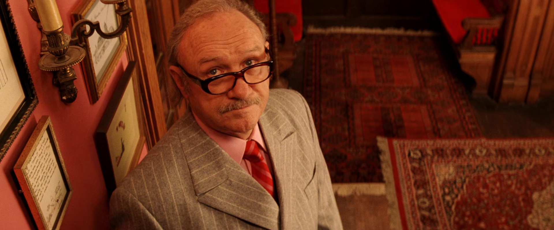 Hackman meets Anderson’s writing halfway and imbues it with a sense of earnest authenticity – like a film actor walking onto a theater stage and grappling with some of the Bard’s work. His hesitance in fully committing to the director’s vernacular makes him dig even deeper into his own ego. Hackman’s frustrations spill out onto the screen as Royal learns to take notice of others’ suffering. His growth parallels Hackman’s own trajectory in adapting to Anderson’s material and learning to read between the lines, which is where most of Anderson’s gems are – right beneath the surface, where we least expect them. Like when the camera closes in on Royal’s face as he says, “Look, I know I’m going to be the bad guy on this one, but I just want to say the last six days have been the best six days of probably my whole life,” which is followed by the narrator telling us, “Immediately after making this statement, Royal realized that it was true.” In that very moment, Hackman’s face does a very slight, almost imperceptible twitch. The smile on his face freezes, as if seized by sudden paralysis. Other actors would have played it for show, whereas Hackman plays it for real.