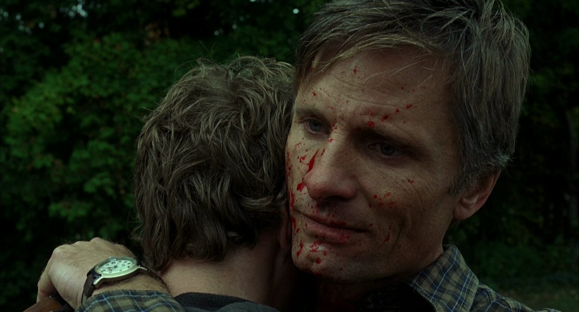 Twenty years later this claim still rings true. But upon rewatching Cronenberg’s film, I was drawn to the magnificent blend of meditation and humor. Because even though Cronenberg fully acknowledges how ridiculous the story is, how utterly phony some of the elements in it are (such as the subplot involving Tom Stall’s son being bullied at school and, predictably enough, rebelling against the bully, showcasing his father’s violent predisposition), he is still concerned with the protagonist’s plight – that no matter how good of a person one becomes, no matter how loved one is, there is still a past linked to the person we once were. And that past is linked forever to our bodies, to our physical appearance. That is Tom Stall’s predicament.